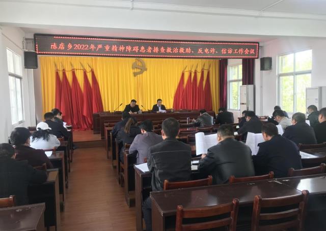 本网讯 通讯员鲁思凯 陈店乡召开2022年严重精神障碍患者排查救治救助、反电诈、信访工作会议。乡政法办、信访办、卫生院、陈店派出所、社会事务服务中心、中心学校、各村(社区)辅警参会。