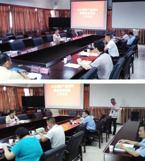 白云湖街召开严重精神障碍患者排查工作会议.白云湖派出所,白云湖街综信科,石井街社区卫生服务中心等相关职能部门,科室以及各经济联社治保主任,各社区居委会民政专职20余人参加了会议. 会上,石井街社区卫生服务中心邓医师介绍了我街精神障碍患者的基本情况,明